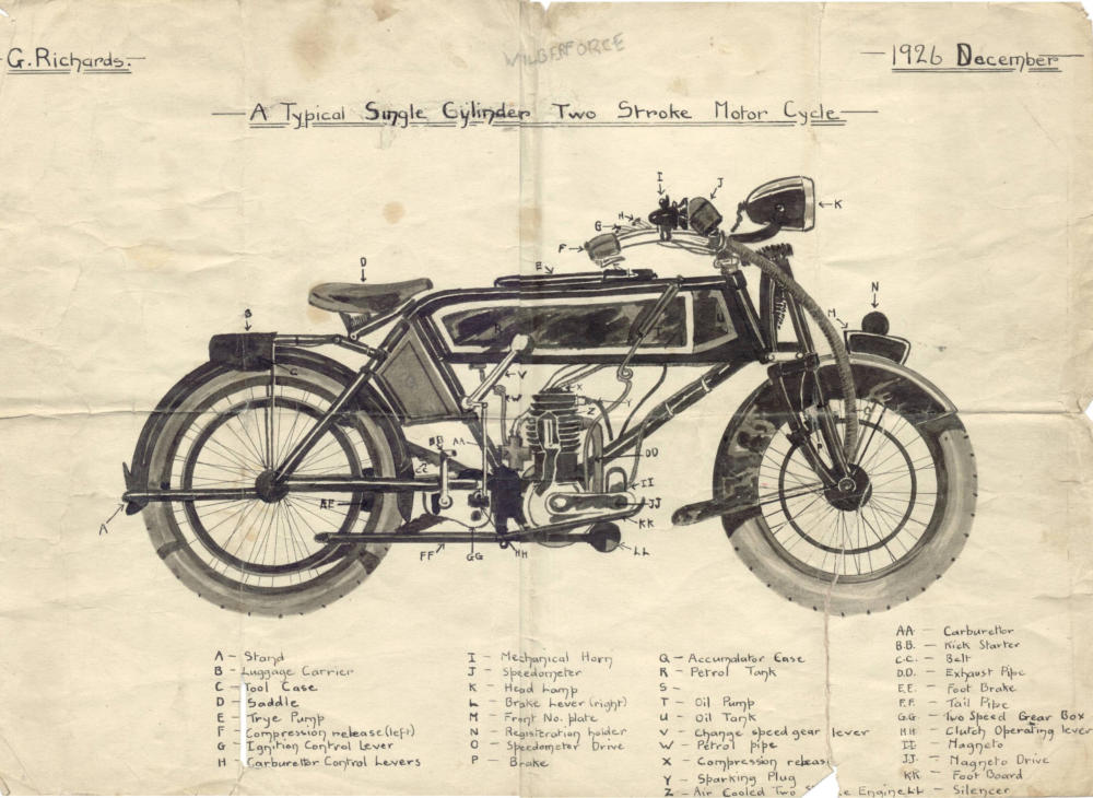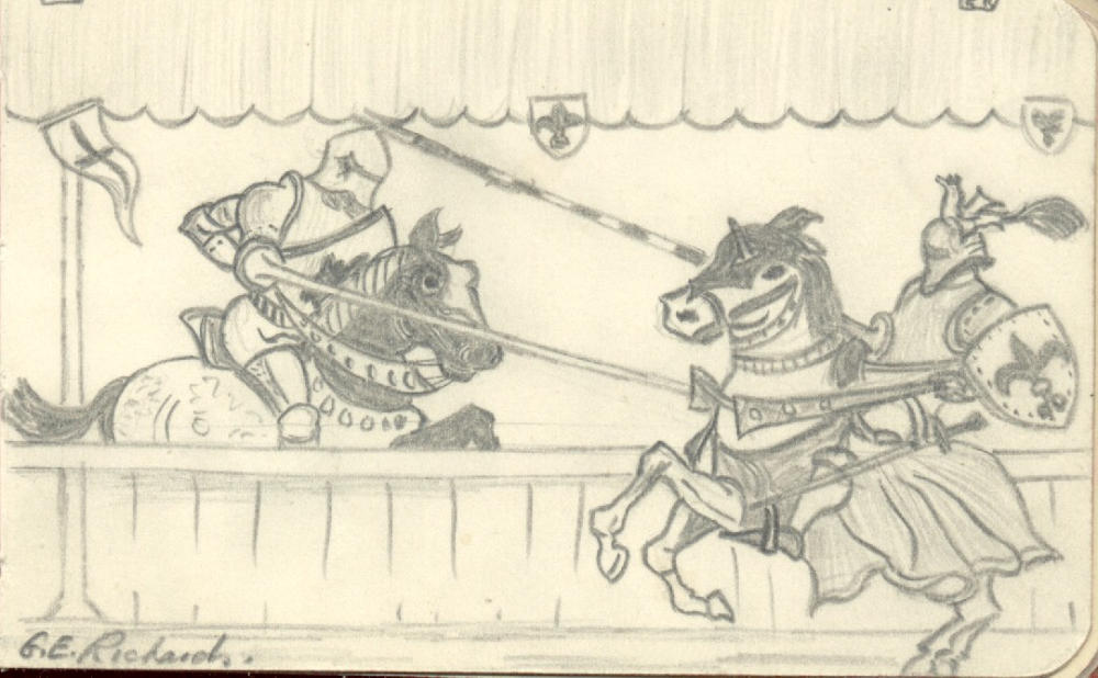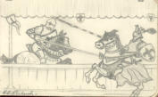below two pictures drawn by father - the bike at just14 and the jousting original hung in my bedroom